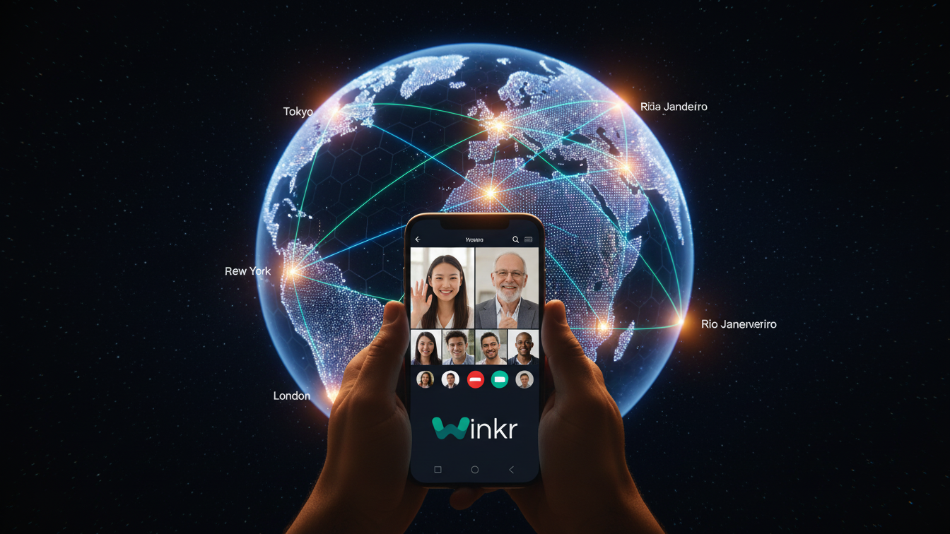 The beauty of Winkr is the randomness. You don't choose the destination. The algorithm drops you somewhere new. One minute you are in a quiet library in Germany, the next you are at a beach party in Brazil.